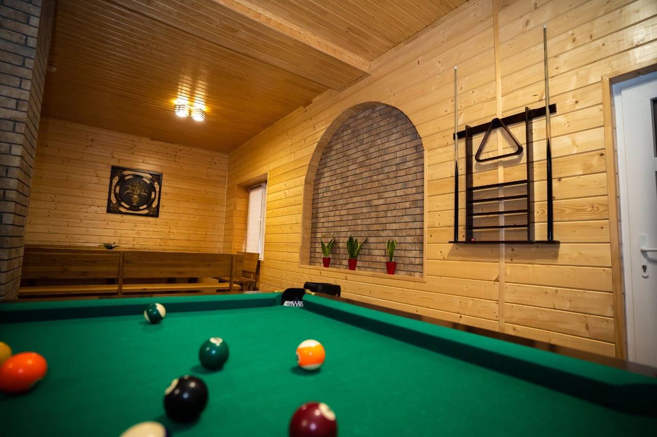 Для гостей у готелі облаштовано більярдну кімнату та простору зону відпочинку. На подвір’ї – зручна безкоштовна парковка, дитячий майданчик, затишні альтанки для компаній та власний кафетерій.
