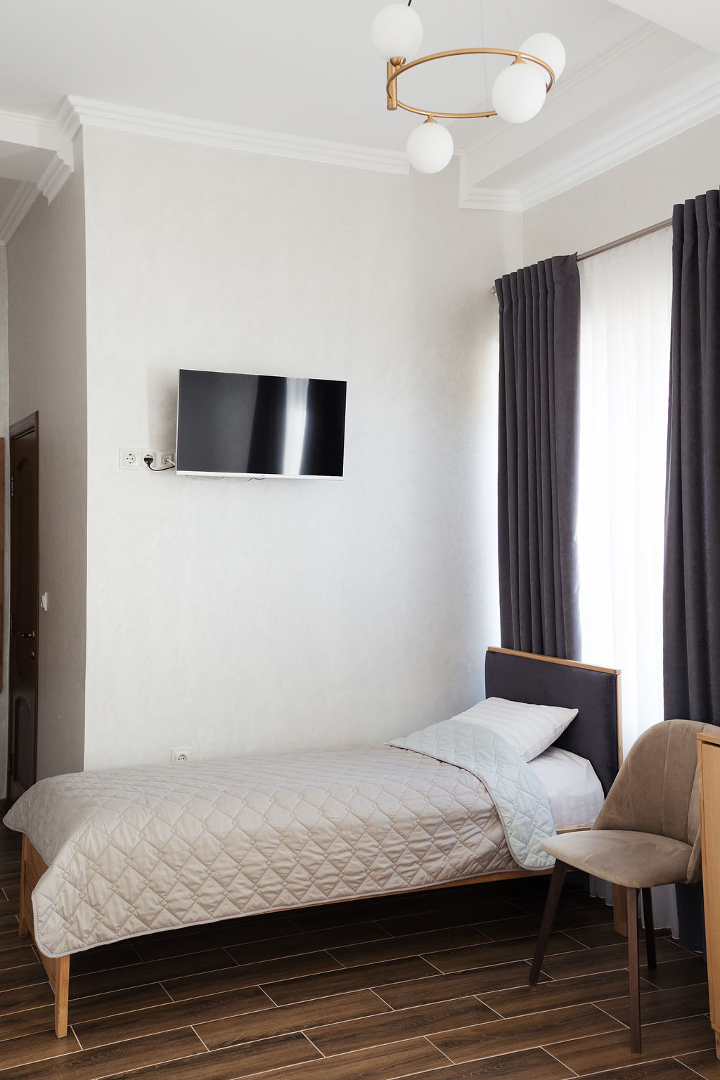 Чудовий тримісний номер з усіма зручностями, одним двоспальним ліжком та одним односпальним.